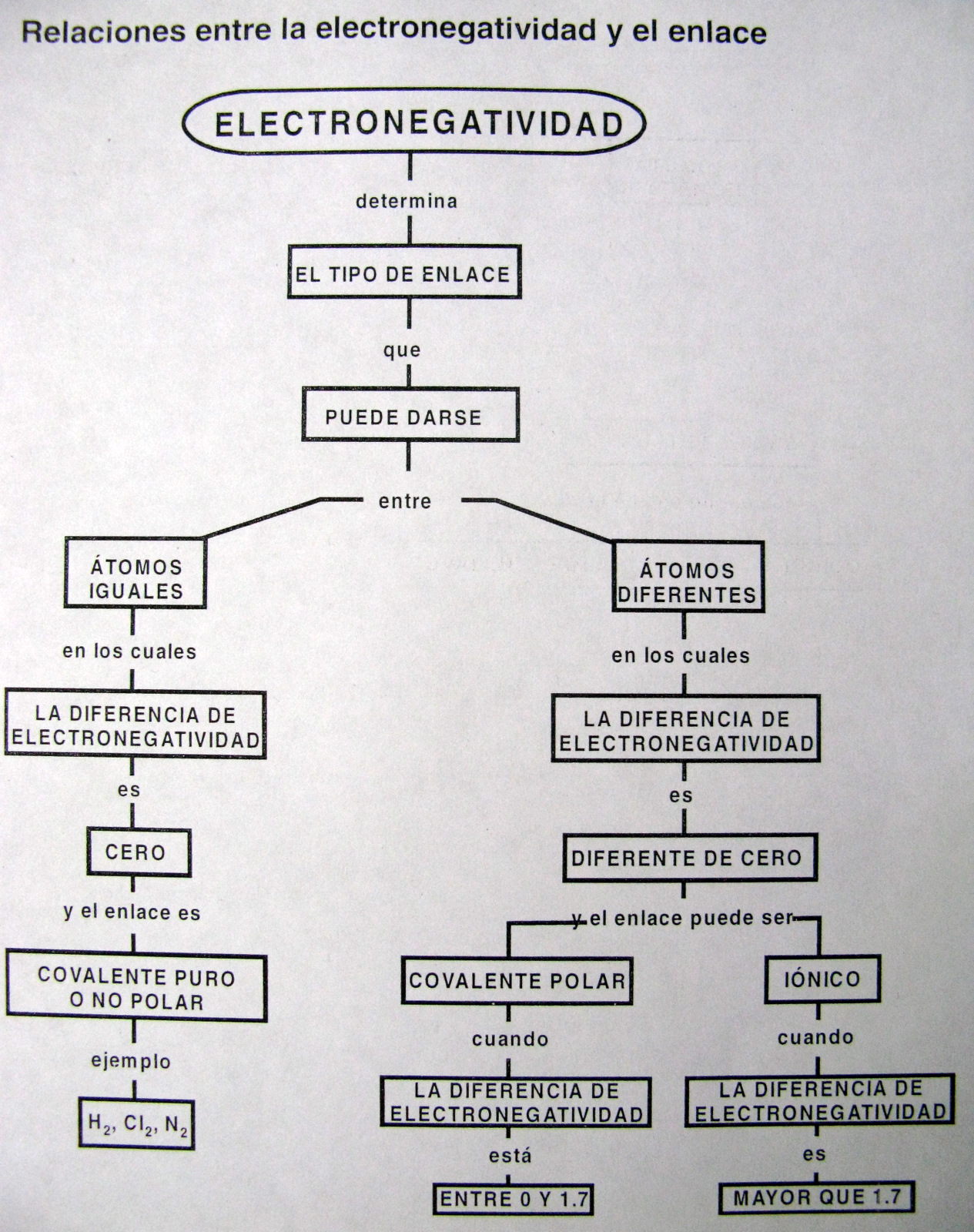 La diferencia de electronegatividades que hay entre los elementos que se unen determina el tipo de unión química o enlace que se ha de formar.